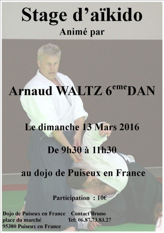 Cette année, le stage d'Aikido est animé par Arnaud WALTZ, 6ème dan, au Dojo du club d'Aïkido de Puiseux en France.